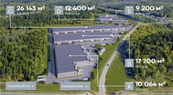 ПРОДАЮТСЯ БЛОКИ от 565 м2 до 26143 м2 с возможностью их увеличения за счет соседних блоков. СДАЧА в эксплуатацию - лето 2024 г. Есть и другие блоки-складские помещения.
