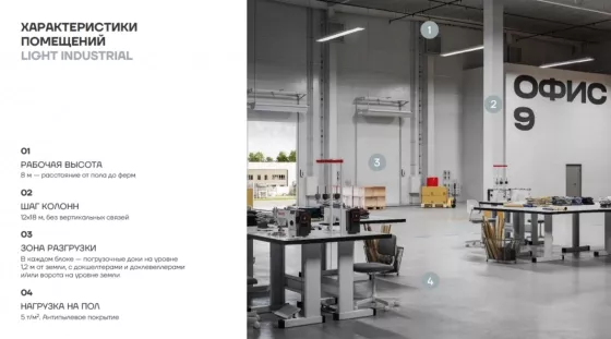 Производственные площади с погрузочной зоной и помещения под офис, хранение, шоу-рум.