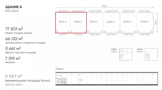 ПРОДАЮТСЯ блоки - складские помещения от 6567 м2 до 77 301 м2 с возможностью их увеличения за счет соседних блоков. Срок сдачи в эксплуатацию - 2 кв.2025 г.