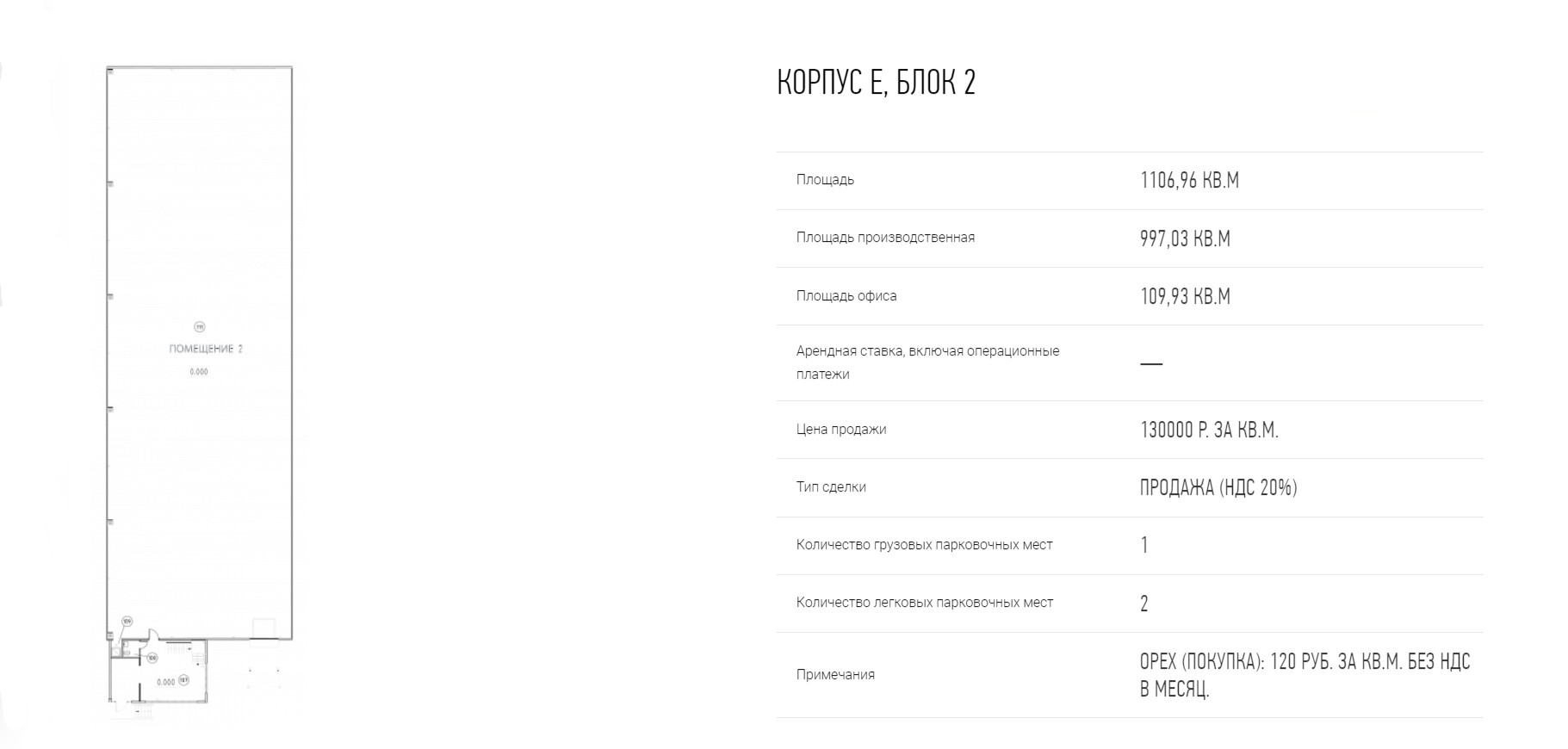 Четвертая очередь. Срок въезда - 2й квартал 2025 года, блоки от 550 кв.м. Стоимость - 130 000 руб. за 1 м2, включая НДС.