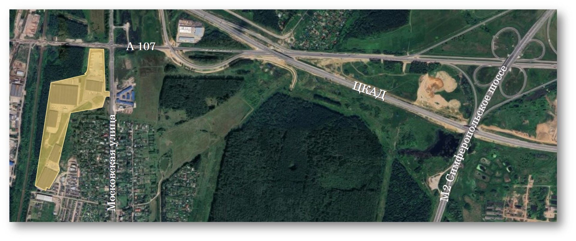 Комплекс расположен на расстоянии 30 км от МКАД на пересечении Малого Московского кольца А-107 («Бетонки») и Старого Симферопольского шоссе рядом с ЦКАД.