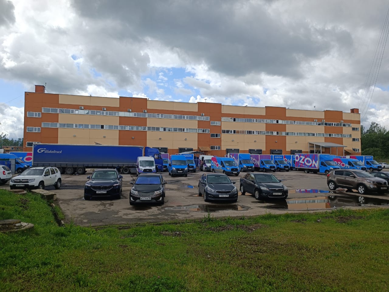 Большое количество парковочных мест для грузового и легкового транспорта на территории складского комплекса.