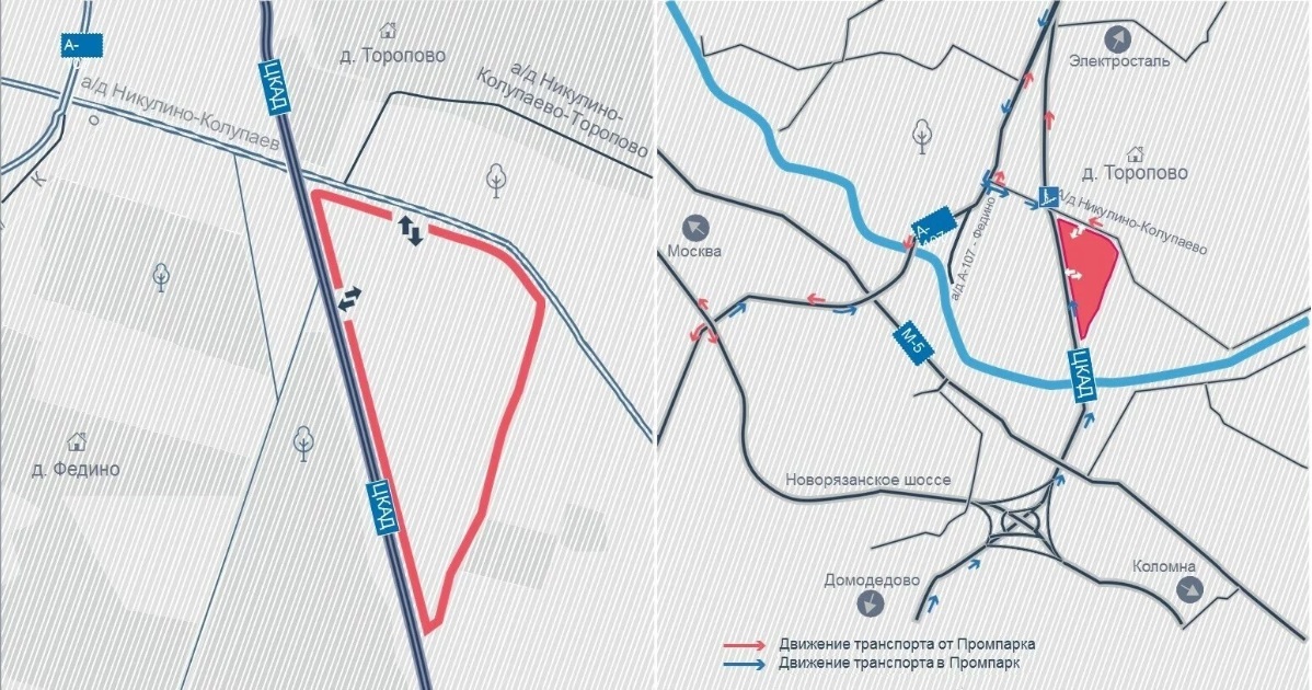 Промпарк расположен: от 40 км, от МКАД, от ЦКАД 2 км и прямой выезд на А-107.