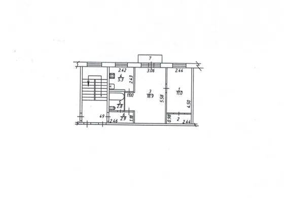 Двухкомнатная квартира на 3 этаже. В доме 5 этажей, кирпичный. Общая площадь 43.3 кв.м. Санузел совмещенный. Комнаты изолированные, не угловая, требуется ремонт.